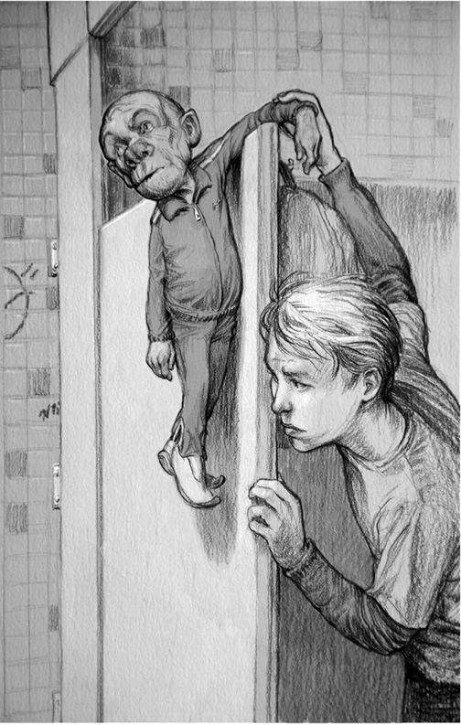 They were each perhaps just a half-foot taller than Mick, with milky-white bodies but startling red faces. Red as if they’d been dipped to their chins in blood and the stuff had dripped some foreign alphabet all over their necks and collars. From top to bottom they had: bald pates, all the worst features of both toad and bat, little wool grey suit jackets with ties, short pants, and chicken feet.